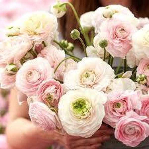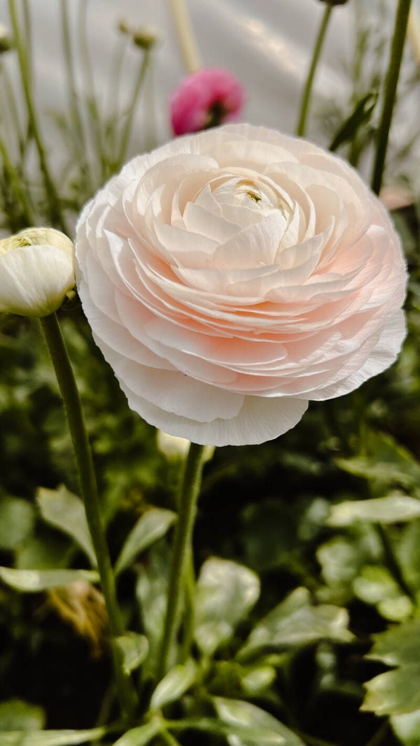 Ranunculus elegance Chamallow was mijn verrassing afgelopen voor jaar. De knop begint wit en verkleurt daarna langzaam naar zachr creme roze. Hele grote bloemkoppen die lang mooi blijven.