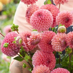 Dahlia Hapet Coppery is een pompom-dahlia in roze tinten. De stevige pompons zijn ideaal in boeketten en geven een mooie afwisseling in de tuin.