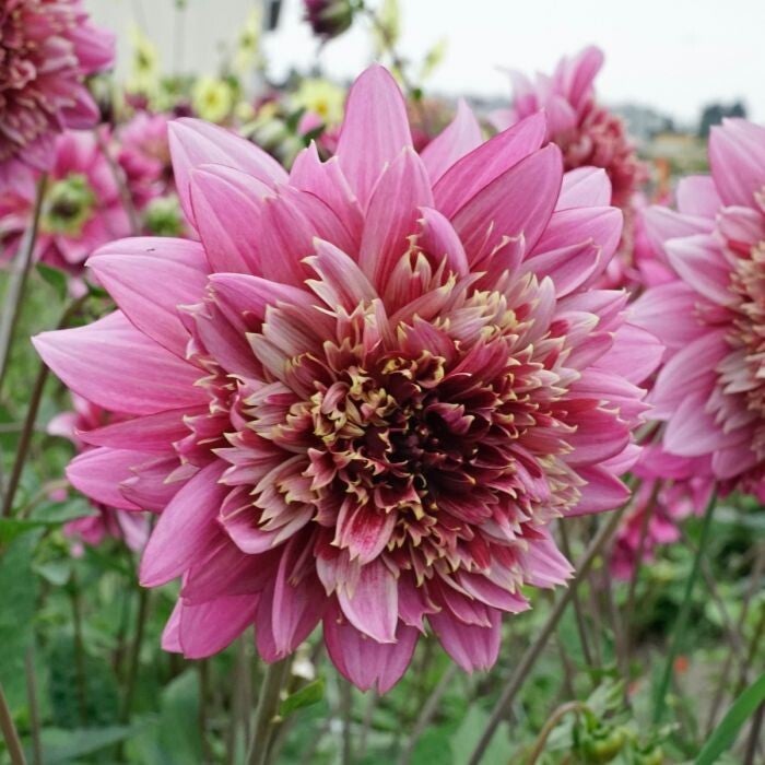 Dahlia Mambo is een rijkbloeiende dahlia met donker roze lila-paarse bloembloemen. Het is een anemoonbloemige variant met veel geruffelde bloemblaadjes rond het hart. Ook geliefd bij de bijen en vlinders.